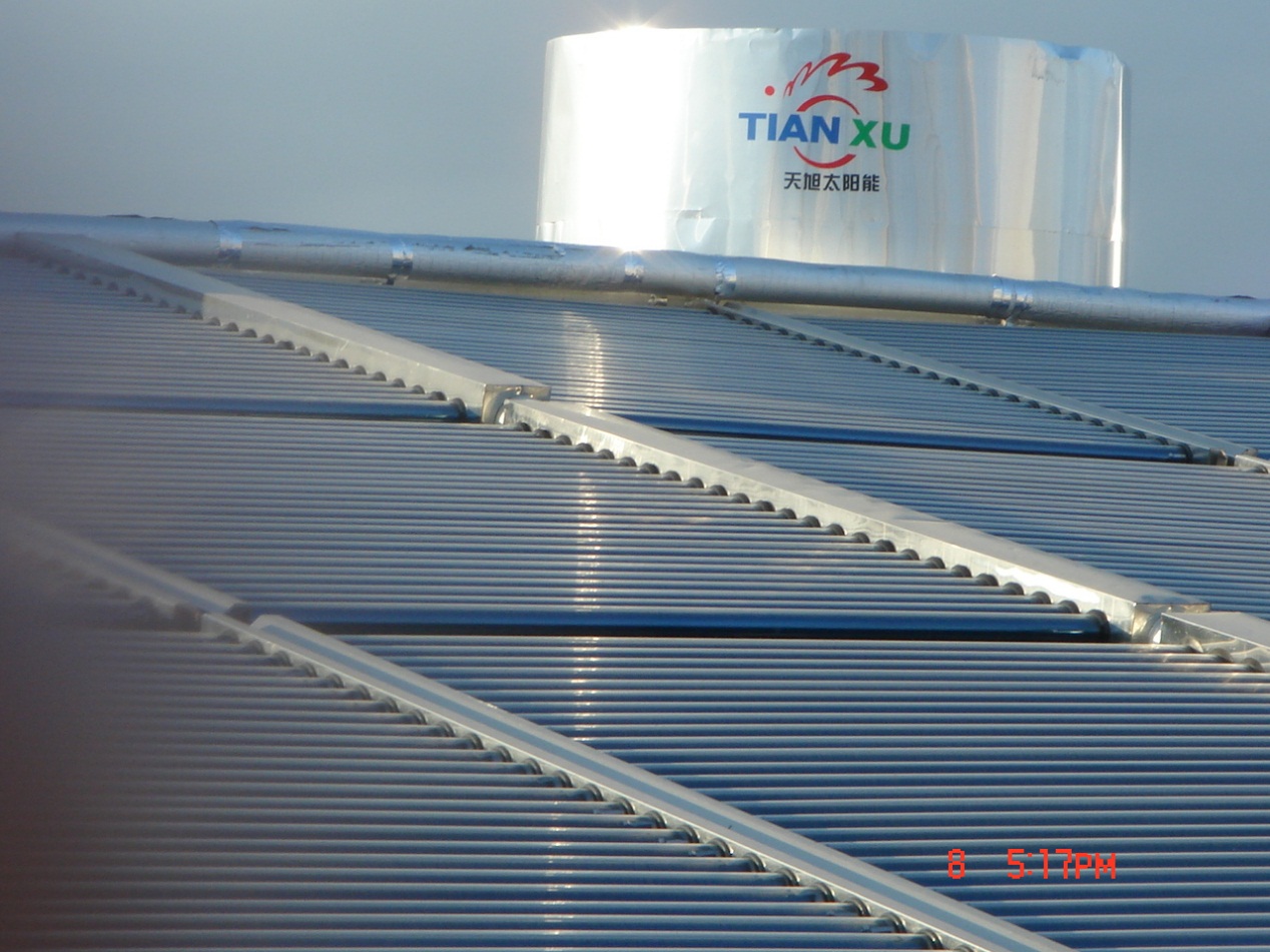 安装在平屋顶或坡屋顶的家用太阳能热水器,是世界上最经济、流行的类型,改善了环境,节省了燃料成本。失速容易,性能稳定,抗风性能好。