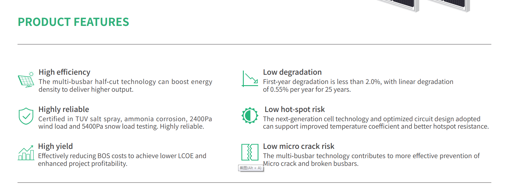 专为工业、商业和集中式地面电站设计,全系列组件产品匹配市场需求。其组件效率可达21.2%。